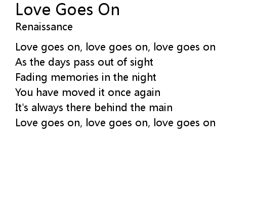 | Love goes on, love goes on, love goes on |