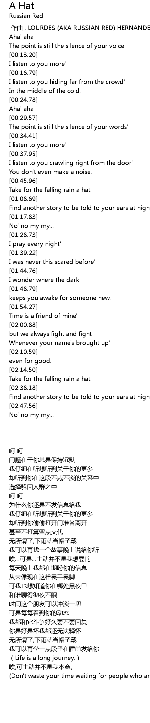 | [00:00.00] | 作曲 : LOURDES (AKA RUSSIAN RED) HERNANDEZ GONZALEZ |