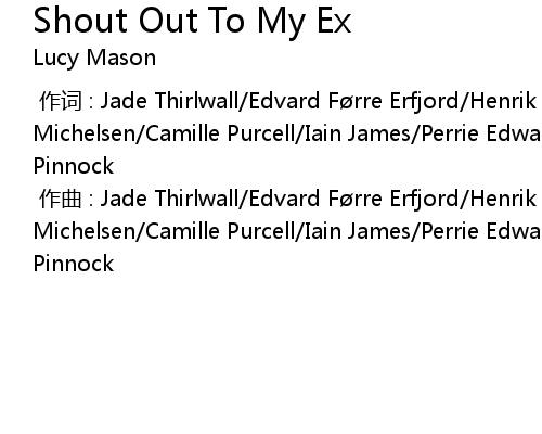 | [00:00.000] | zuo qu : Jade Thirlwall Edvard F rre Erfjord Henrik Michelsen Camille Purcell Iain James Perrie Edwards Jesy Nelson LeighAnne Pinnock |