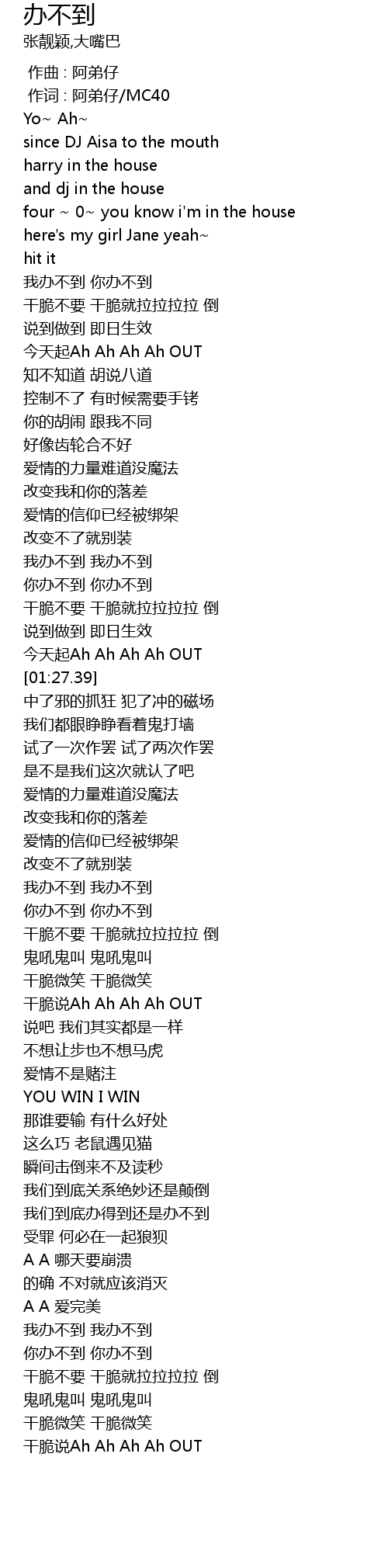 | [01:08.99] | wǒ bàn bú dào wǒ bàn bú dào |