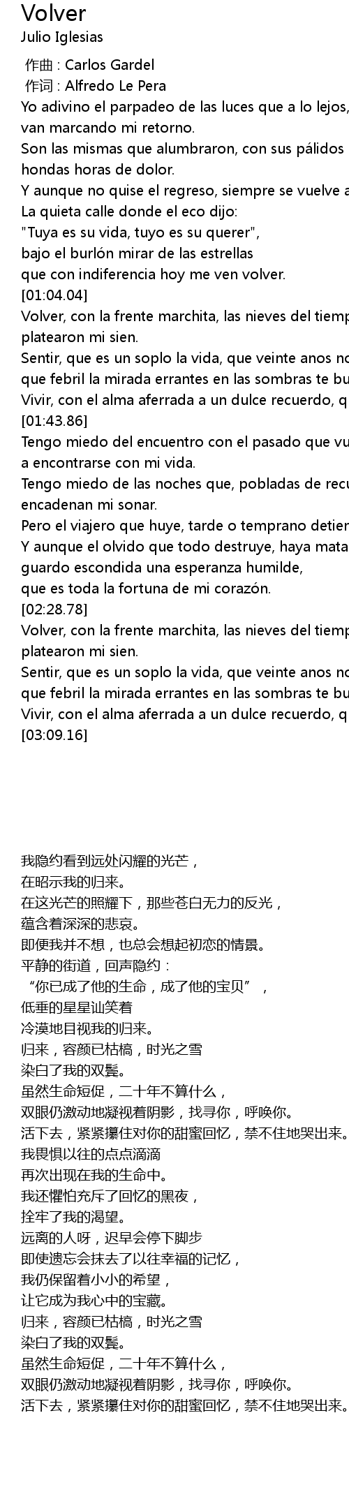 | [00:00.00] | zuo qu : Carlos Gardel |