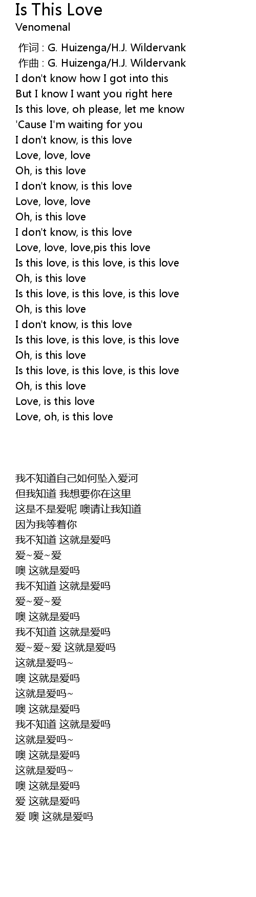| [01:58.19] | Is this love, is this love, is this love |