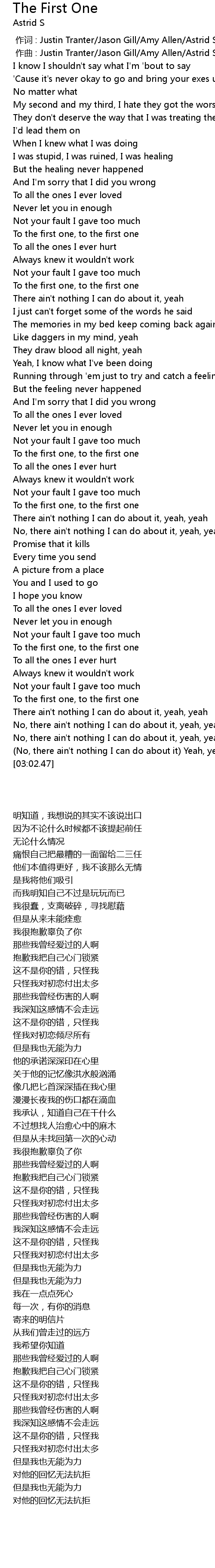 | [00:00.000] | zuo ci : Justin Tranter Jason Gill Amy Allen Astrid Smeplass |