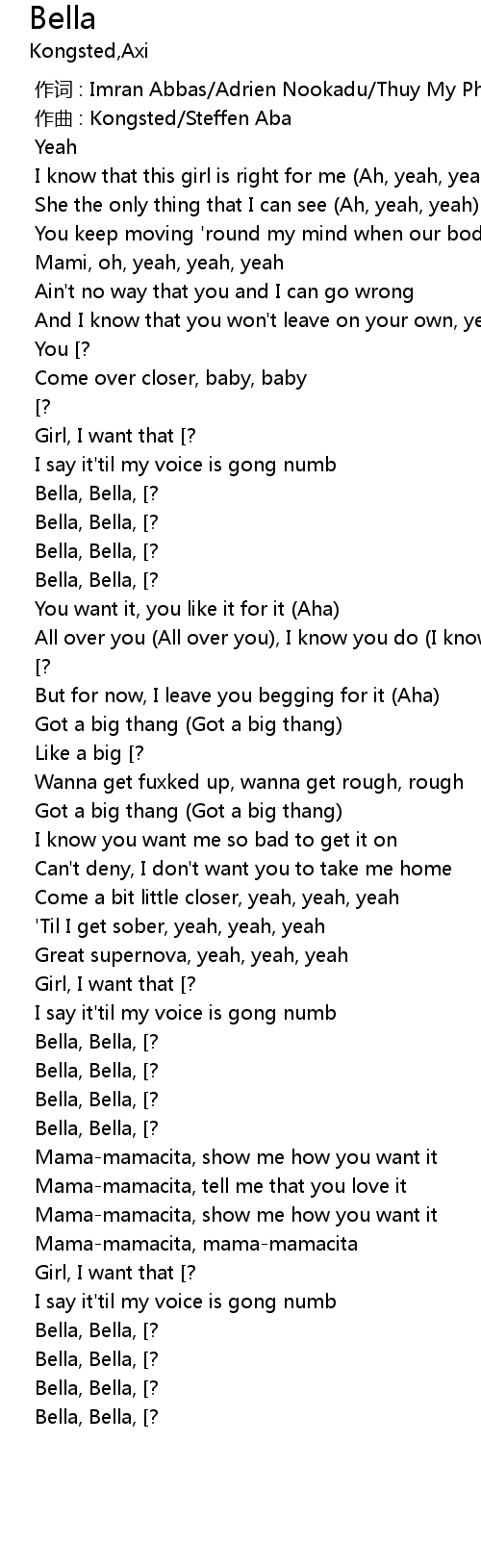 | [01:48.167] Bella, Bella, [?] | Bella |