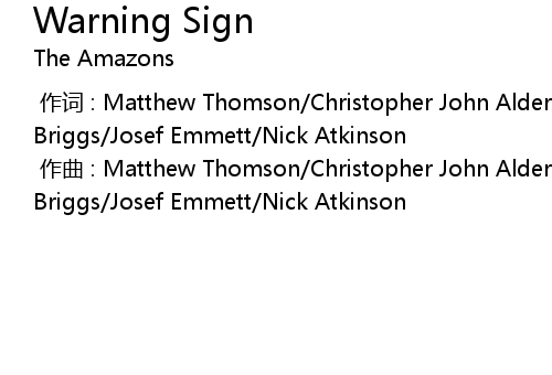 | [00:00.000] | 作曲 : Matthew Thomson/Christopher John Alderton/Elliot James Briggs/Josef Emmett/Nick Atkinson |
