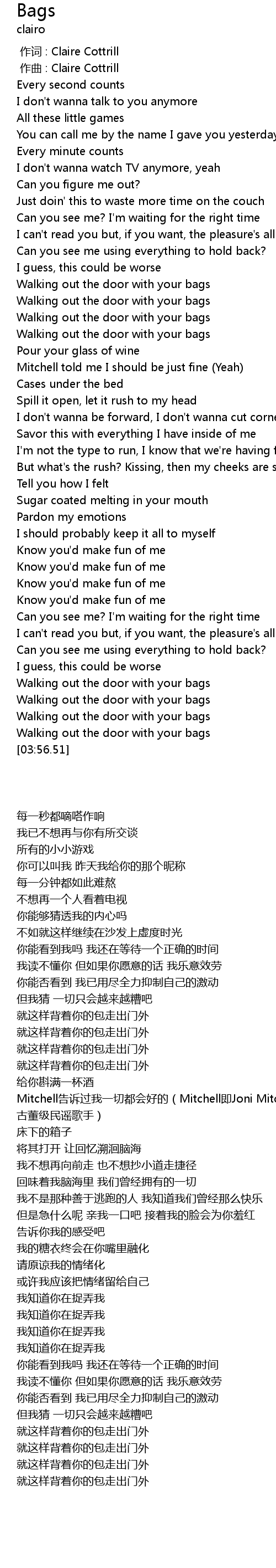 | [00:00.000] | zuo ci : Claire Cottrill |