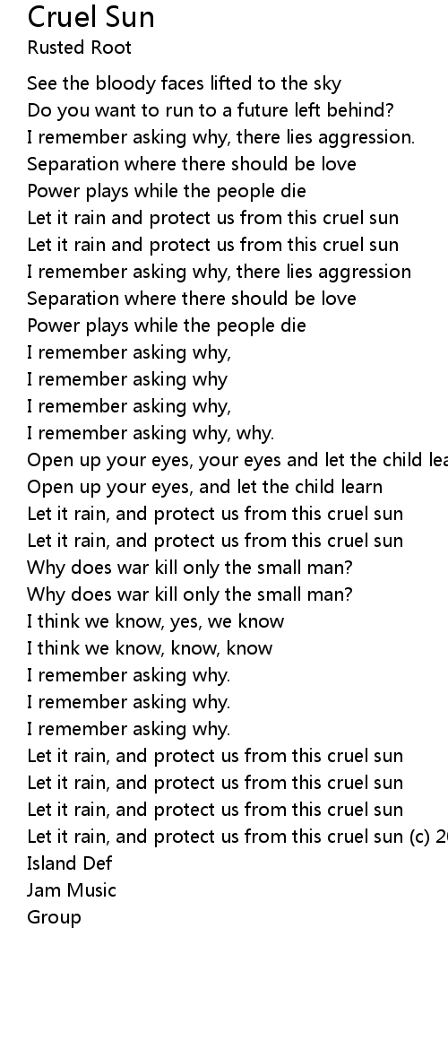 Let it rain, and protect us from this cruel sun |