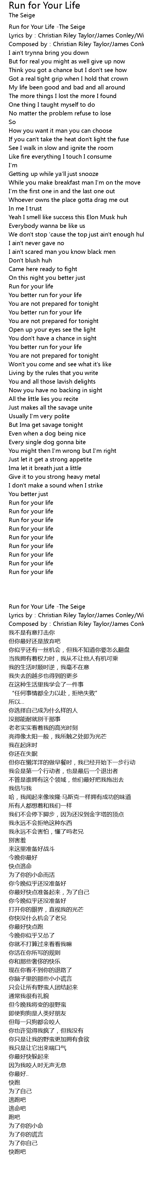 | [00:00.617] | Run for Your Life -The Seige |