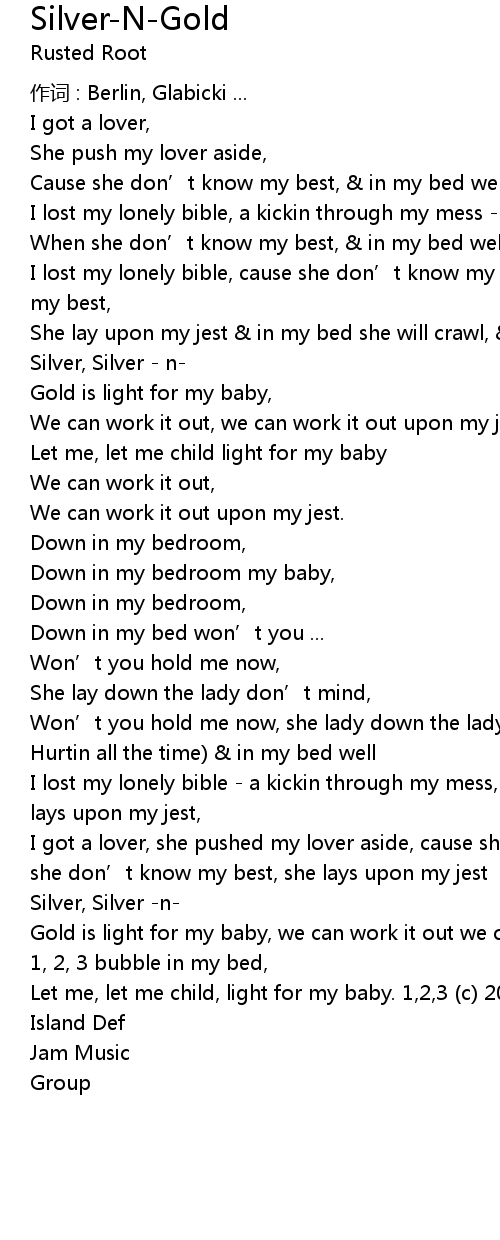 | Gold is light for my baby, we can work it out we can work it out upon my jest. 1, 2, 3 bubble in my bed, | |