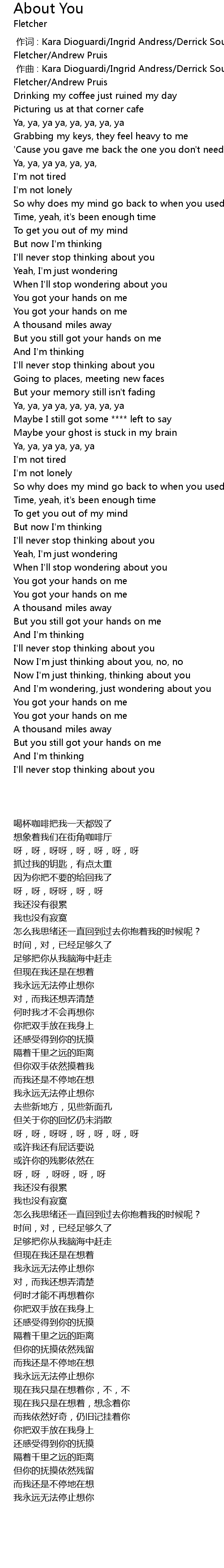 | [02:26.64] | Now I' m just thinking, thinking about you |