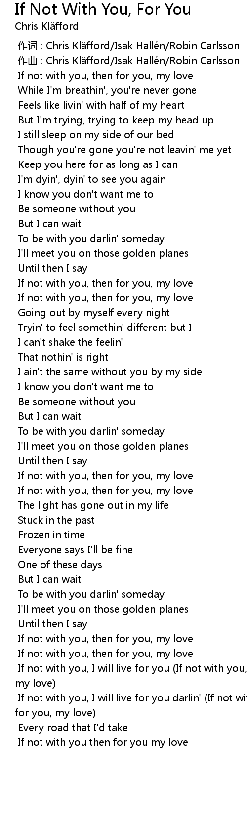 | [02:50.463] | If not with you, I will live for you darlin' If not with you, then for you, my love |
