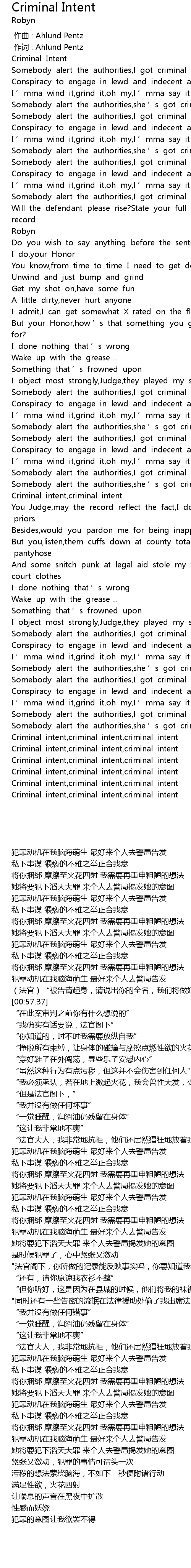 | [03:32.43] | Criminal intent,criminal intent,criminal intent |