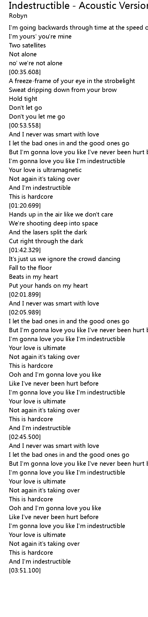 | [03:20.300] | I' m gonna love you like I' m indestructible |