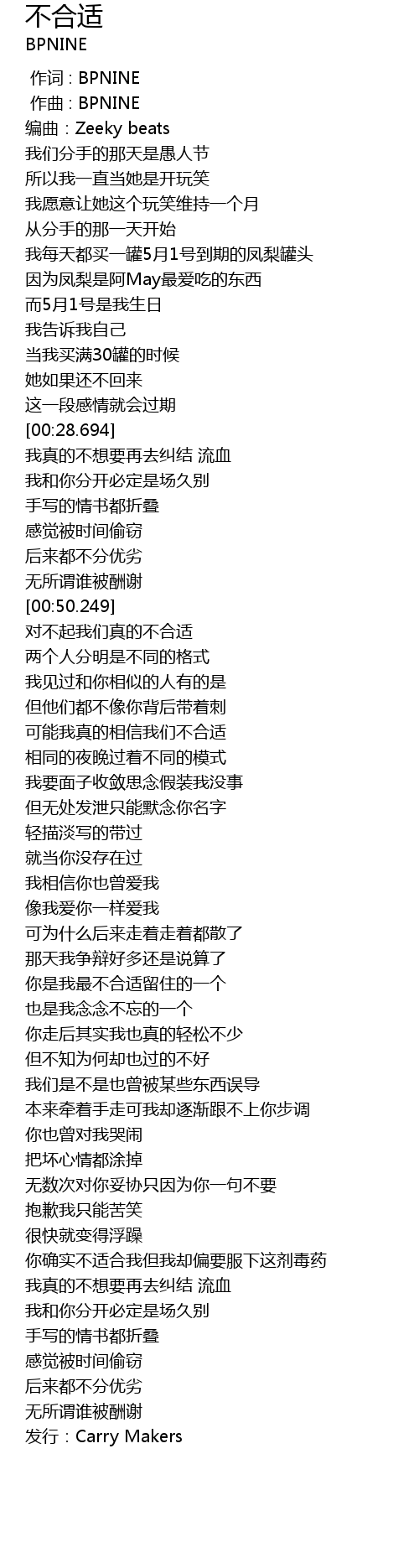 | [01:02.040] | 可能我真的相信我们不合适 |