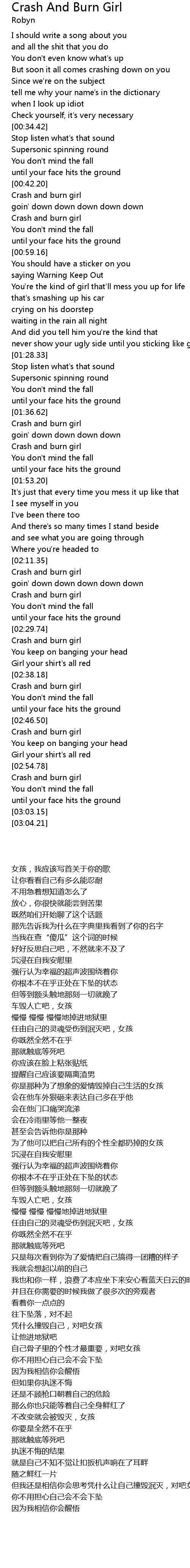 | [00:50.71] | Crash and burn girl |