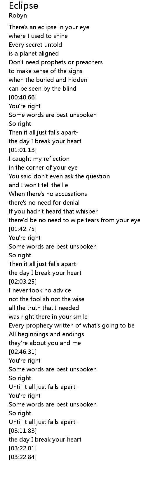 | [00:00.97] | There's an eclipse in your eye |