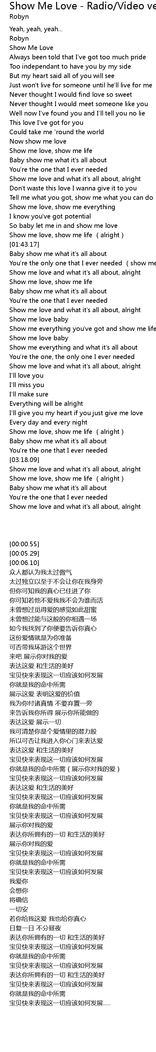 | [01:54.42] | Show me love and what it' s all about, alright |