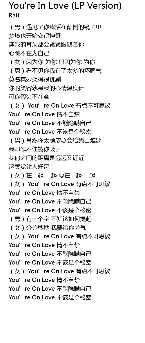 | [02:01.17] | You' re On Love bu gai shi ge mi mi |