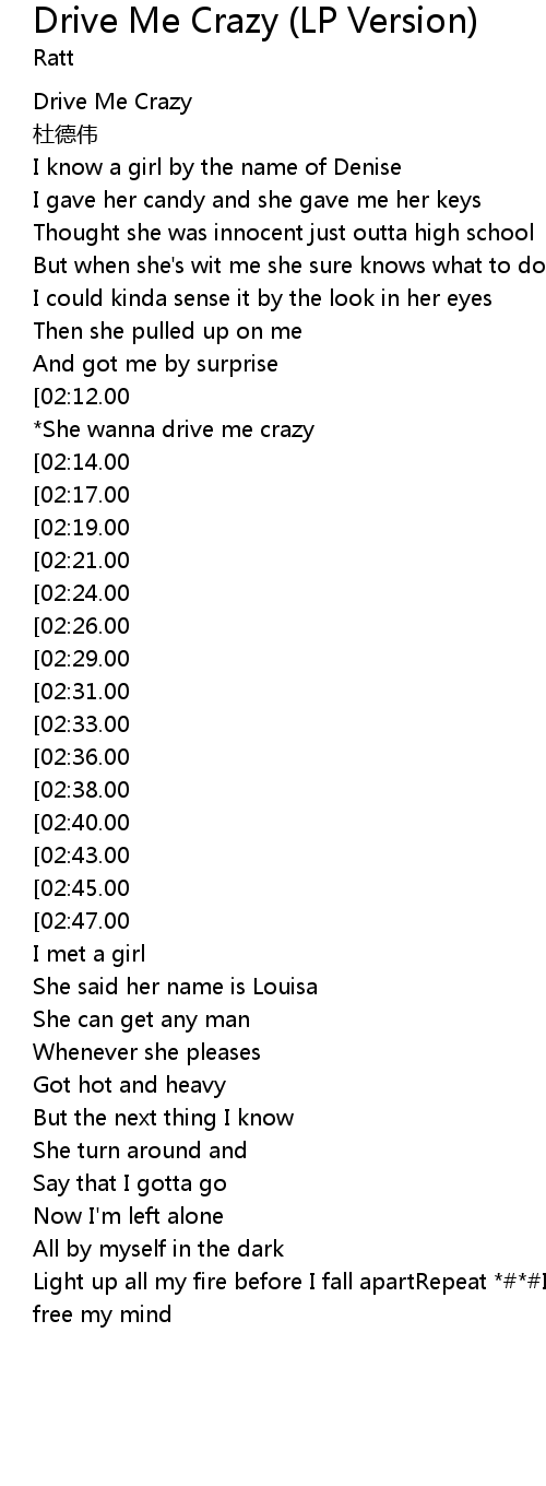 | [03:17.00][02:21.00][01:06.00] | Drive me crazy |
