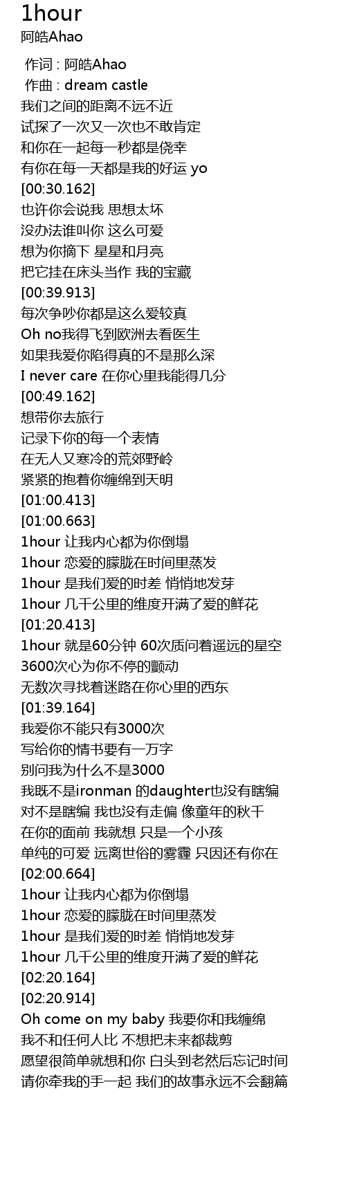 | [02:01.164] | 1hour 让我内心都为你倒塌 |