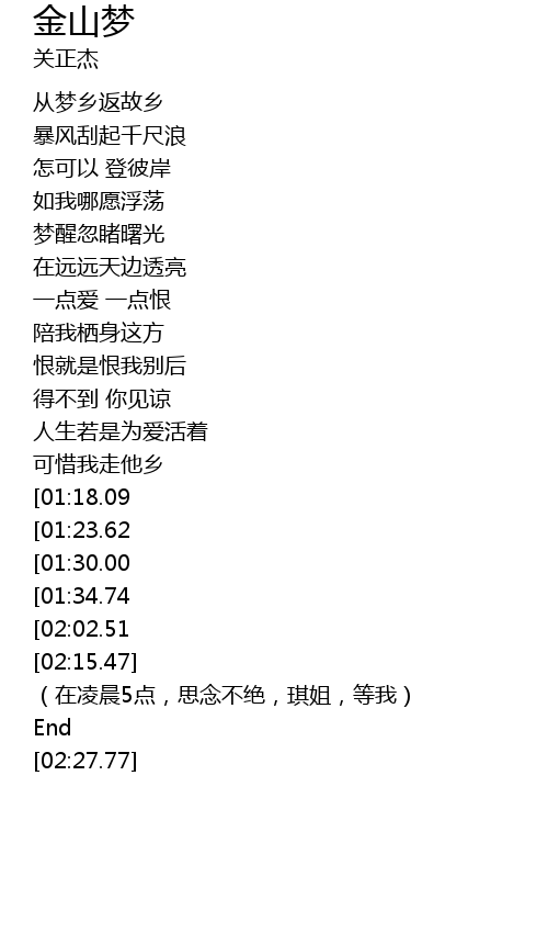 | [02:16.63] | (在凌晨5点,思念不绝,琪姐,等我) |