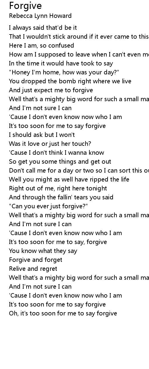 Oh, it's too soon for me to say forgive |