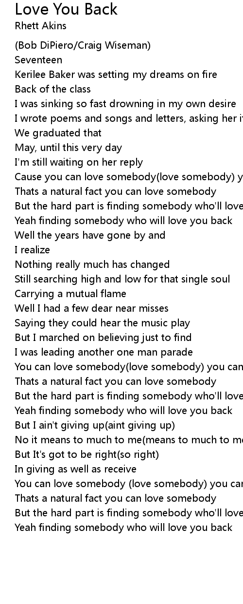 Yeah finding somebody who will love you back |