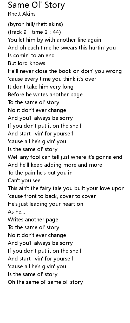 | Oh the same ol' same ol' story |