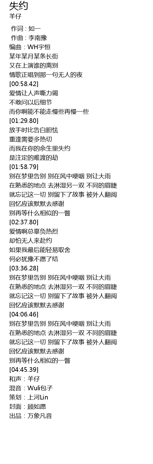 | [02:00.43] | 别在梦里告别 别在风中哽咽 别让大雨 |