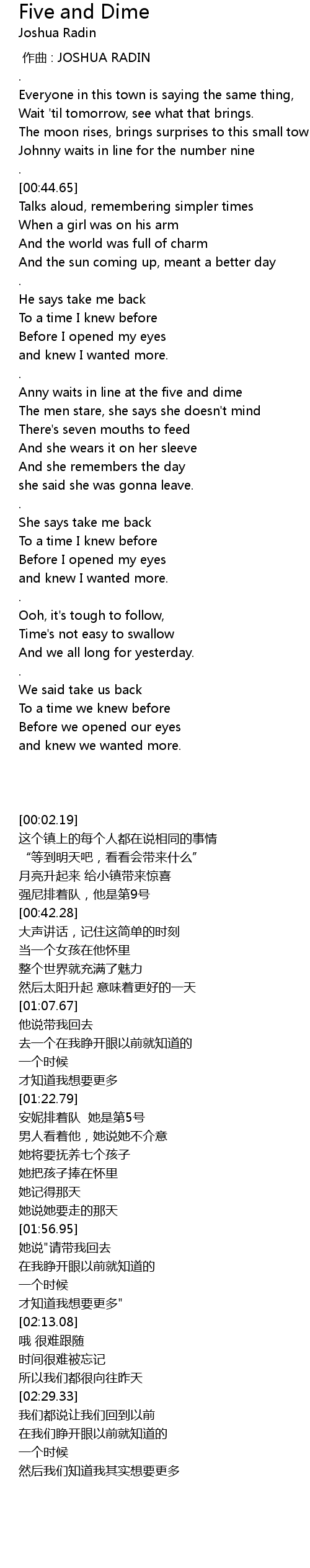 | [00:00.00] | zuò qǔ : JOSHUA RADIN |