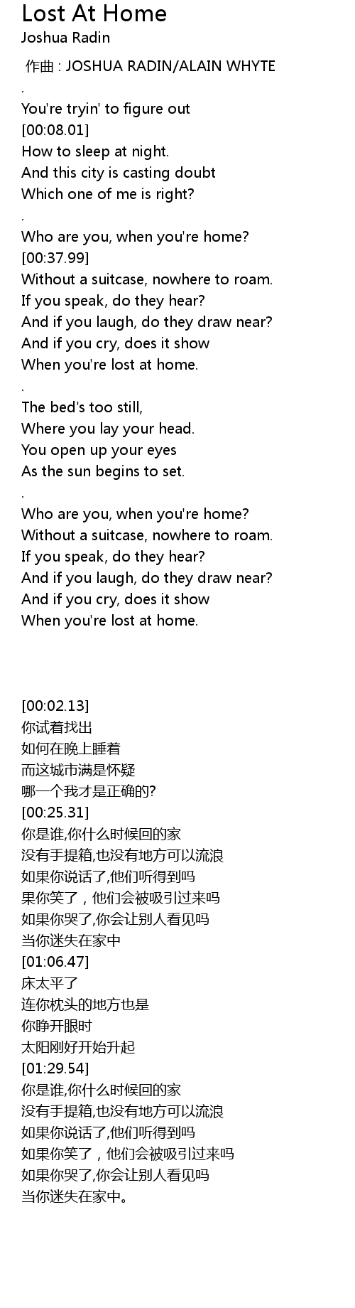 | [00:00.00] | zuò qǔ : JOSHUA RADIN ALAIN WHYTE |