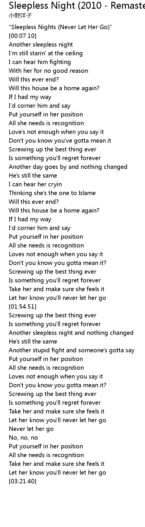 "Sleepless Nights (Never Let Her Go)" |