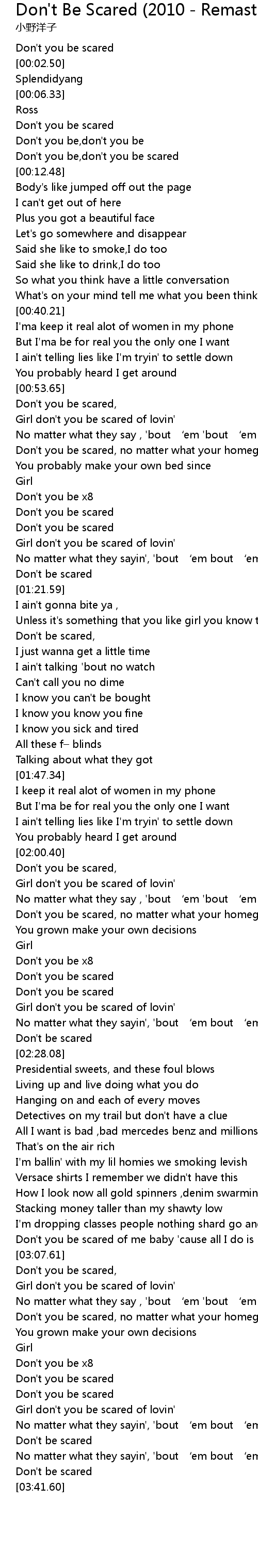 | [03:33.51] | Don' t be scared |