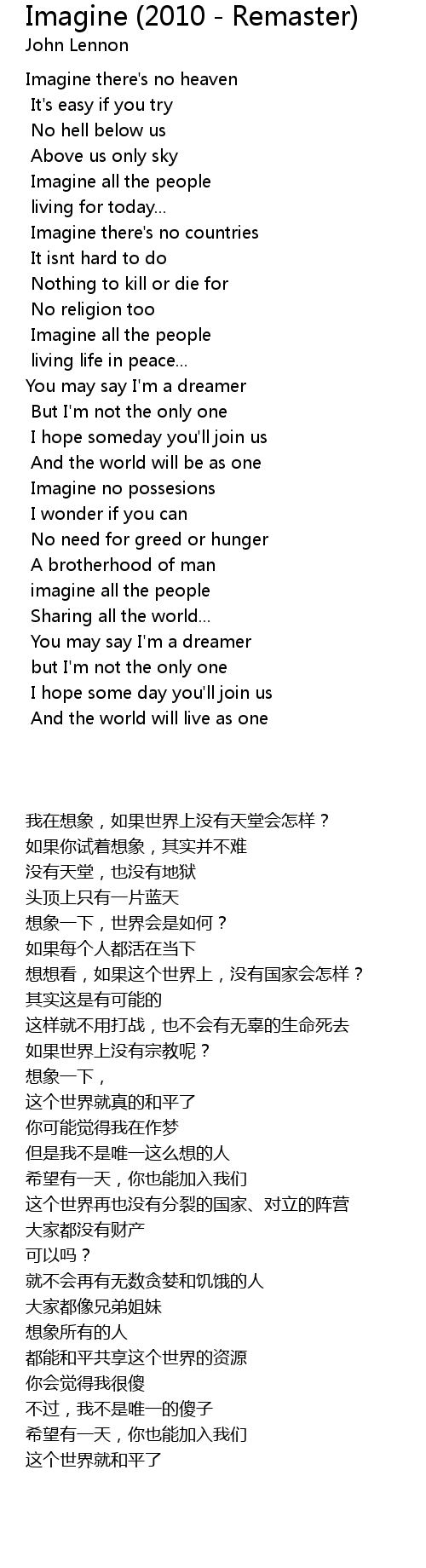 Imagine no possesions |