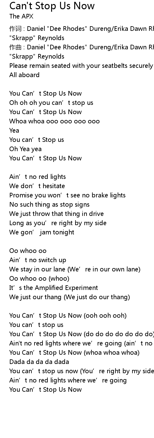 | You Can' t Stop Us Now whoa whoa whoa | |