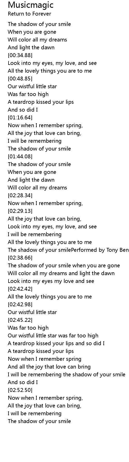 I will be remembering the shadow of your smile |