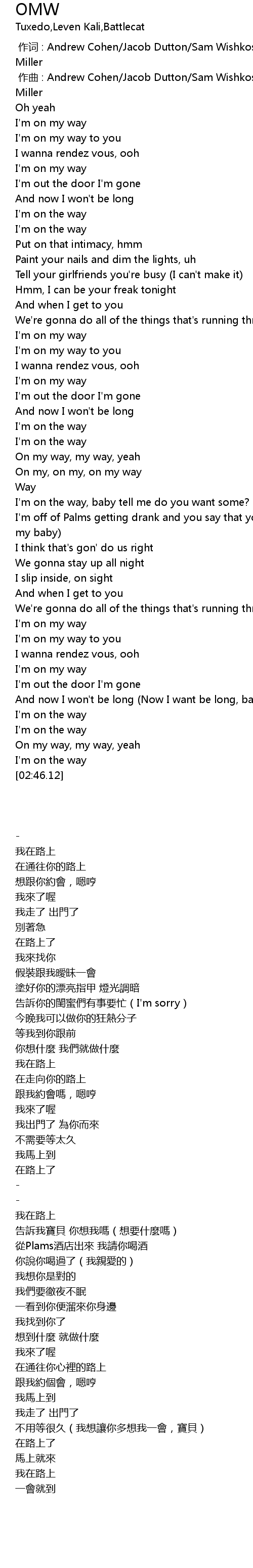| Song | OMW |