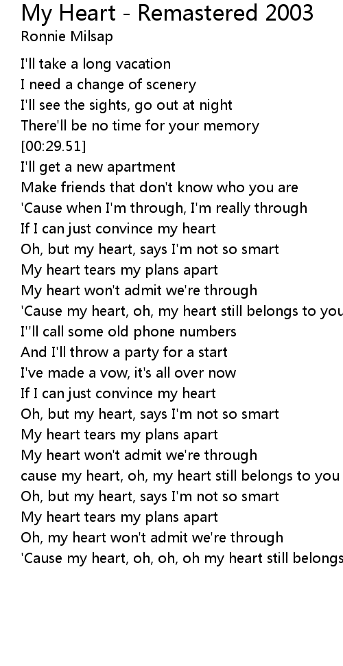 'Cause my heart, oh, my heart still belongs to you |