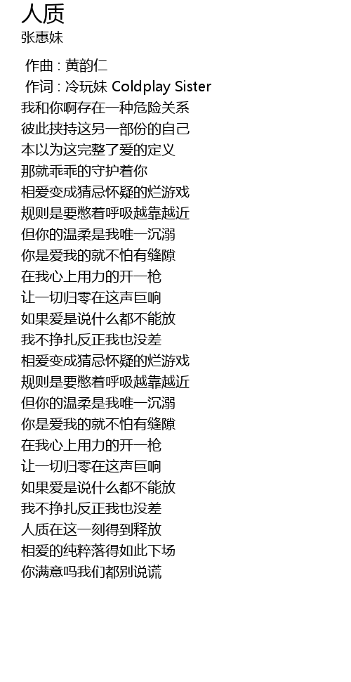 | [00:01.00] | 作词 : 冷玩妹 Coldplay Sister |