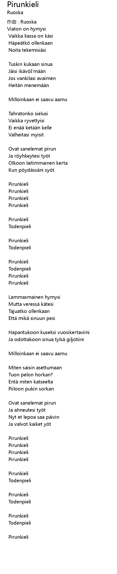 | Song | Pirunkieli |