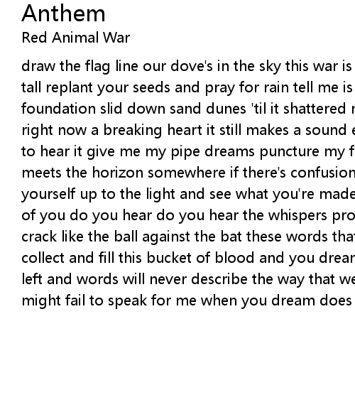 draw the flag line our dove's in the sky this war is over build your bridges up tall replant your seeds and pray for rain tell me is it lonely in the bottle the foundation slid down sand dunes 'til it shattered nothing matters but this song right now a breaking heart it still makes a sound even when there's no one near to hear it give me my pipe dreams puncture my feet with pins and needles the sky meets the horizon somewhere if there's confusion with just what you want hold yourself up to the light and see what you're made of don't let them get the best of you do you hear do you hear the whispers programmed to fail and destined to crack like the ball against the bat these words that used to hold no water collect and fill this bucket of blood and you dream when that's all you have left and words will never describe the way that we feel and this time the music might fail to speak for me when you dream does it seem all too real now |