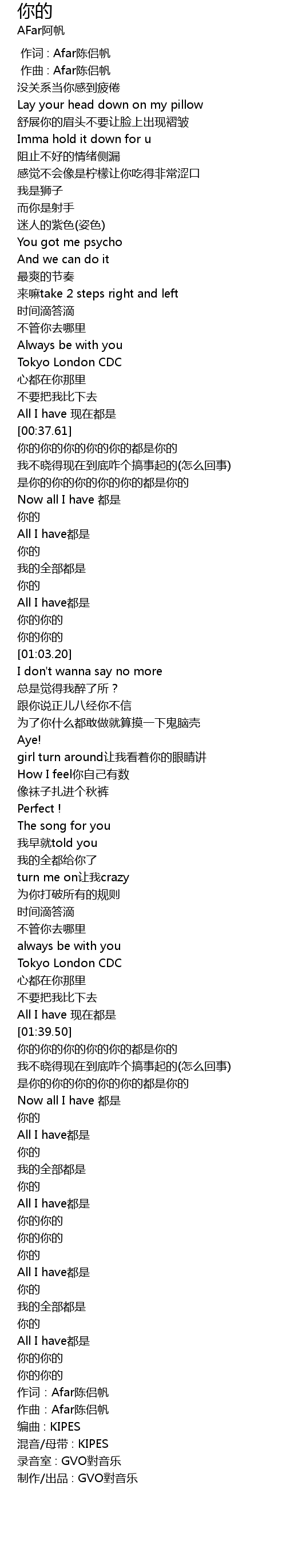 | [01:40.23] | 你的你的你的你的你的都是你的 |