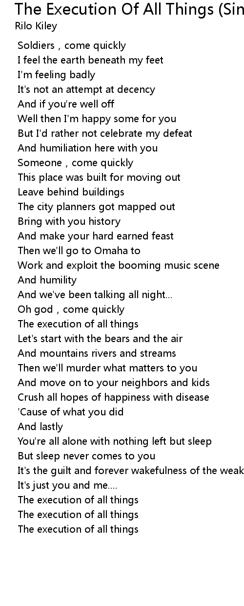 | Song | The Execution Of All Things (Single Version) |