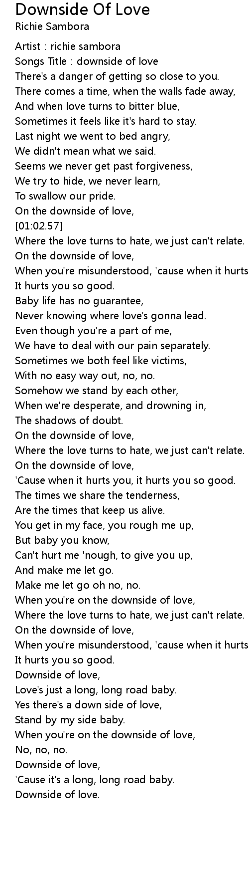| [04:40.93] | When you're on the downside of love, |