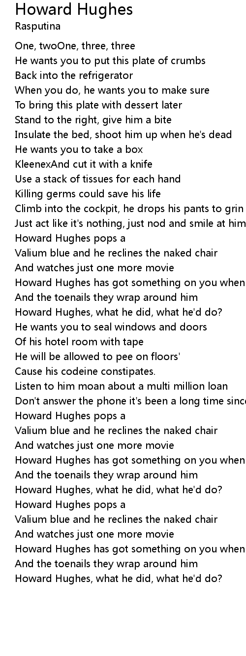 Howard Hughes has got something on you when the fingers grow long |