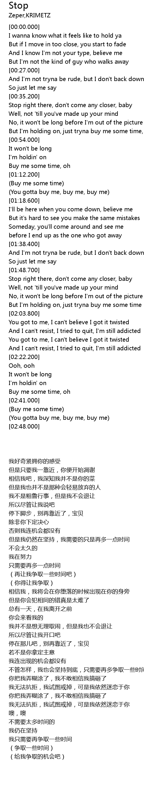 | [01:48.800] | Stop right there, don't come any closer, baby |
