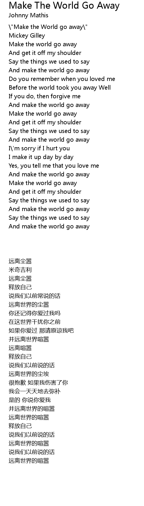 \"Make the World go away\" |