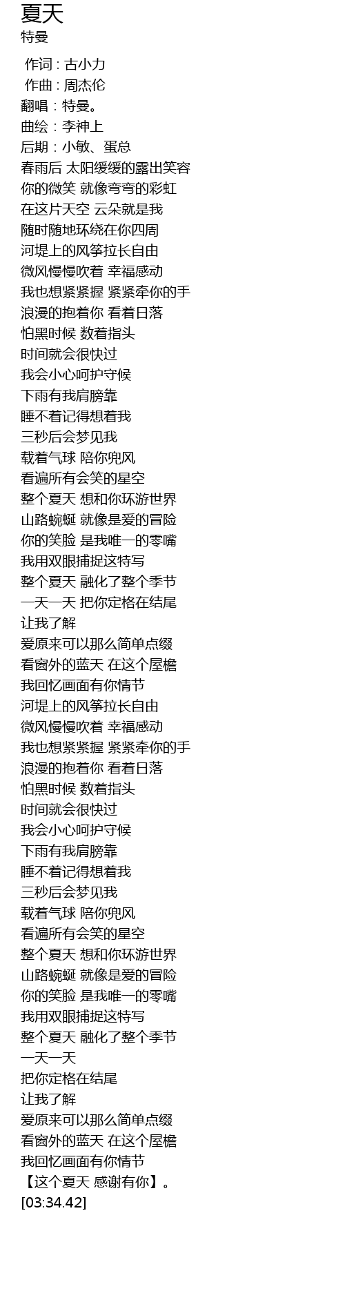 | [03:30.62] | 【这个夏天 感谢有你】。 |