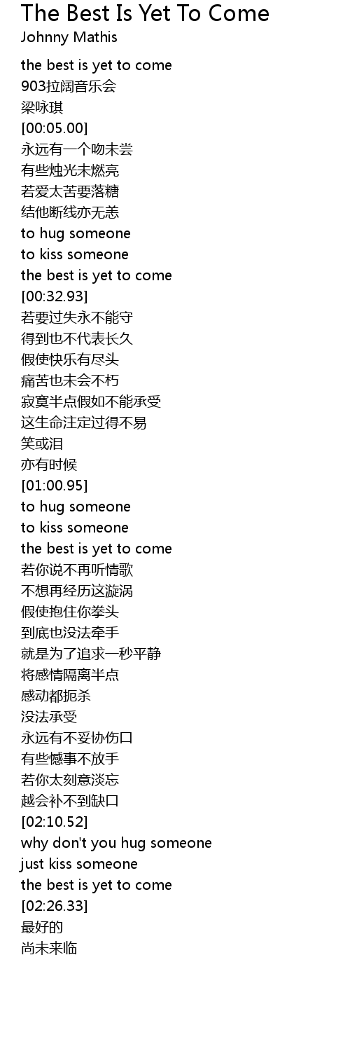 | [02:22.37] | the best is yet to come |