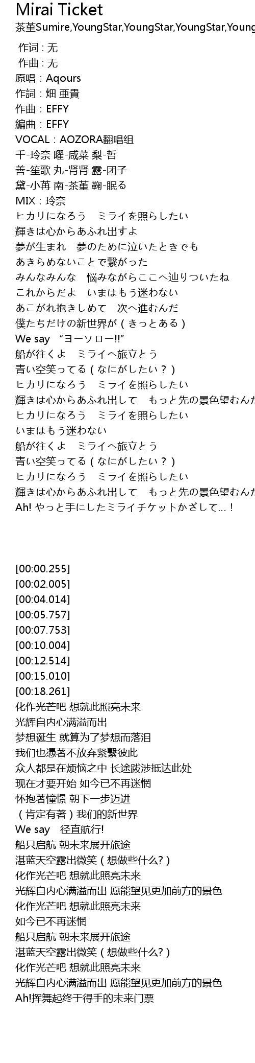 | [00:07.753] | VOCAL: AOZORA fān chàng zǔ |